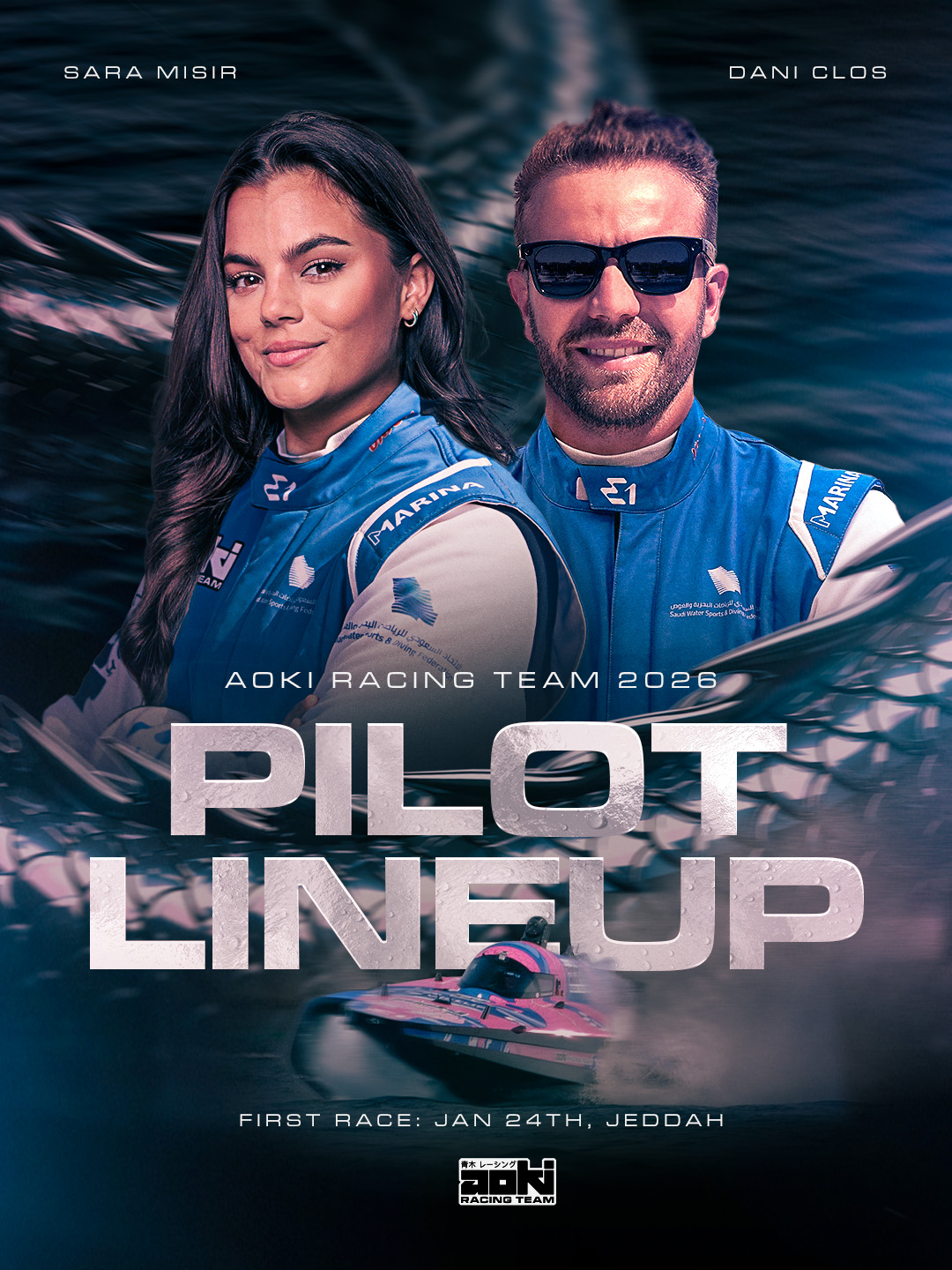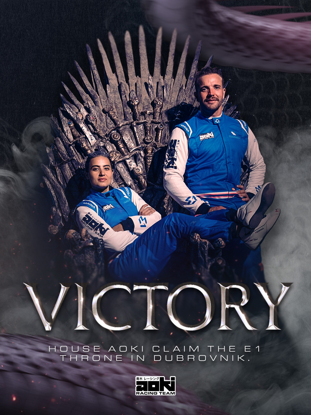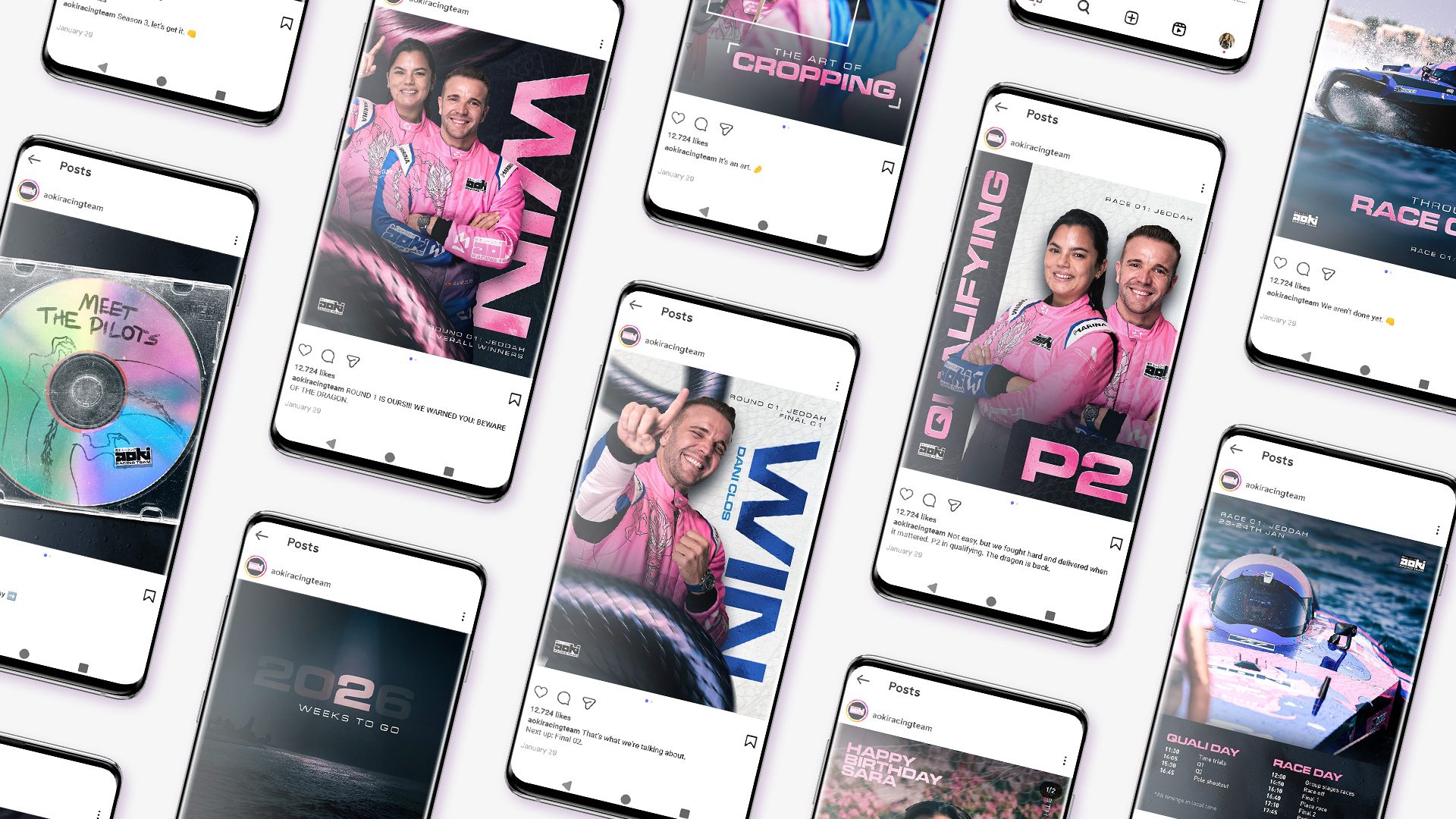 Following a disappointing first season, Aoki Racing Team re-invented themselves for Season 2 with a bold new livery and colours to match. I developed the identity into a full suite of assets to be used across social media and beyond, including their website.